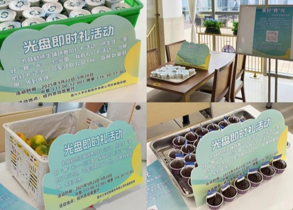 为积极响应制止餐饮浪费的号召,弘扬勤俭节约的传统美德,9月22日至28日,后勤服务有限公司组织开展了“制止餐饮浪费——你光盘・我有礼”校园系列活动。活动受到了广大师生的踊跃参与,在校园内营造了良好的节约氛围。