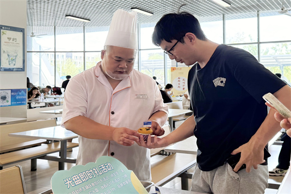 活动过程中,广大师生在各自营餐厅用餐结束后,只要进行“光盘”打卡,就能获得光盘即时礼。无论是中餐还是晚餐时段,各自营餐厅都安排了工作人员热情引导师生参与活动,为每一位打卡成功的师生送上烘焙产品、酸奶、水果等贴心福利。