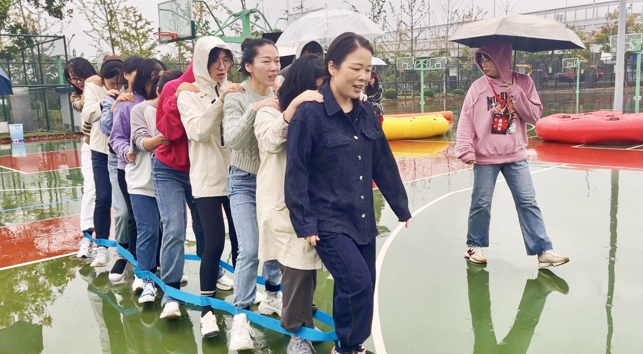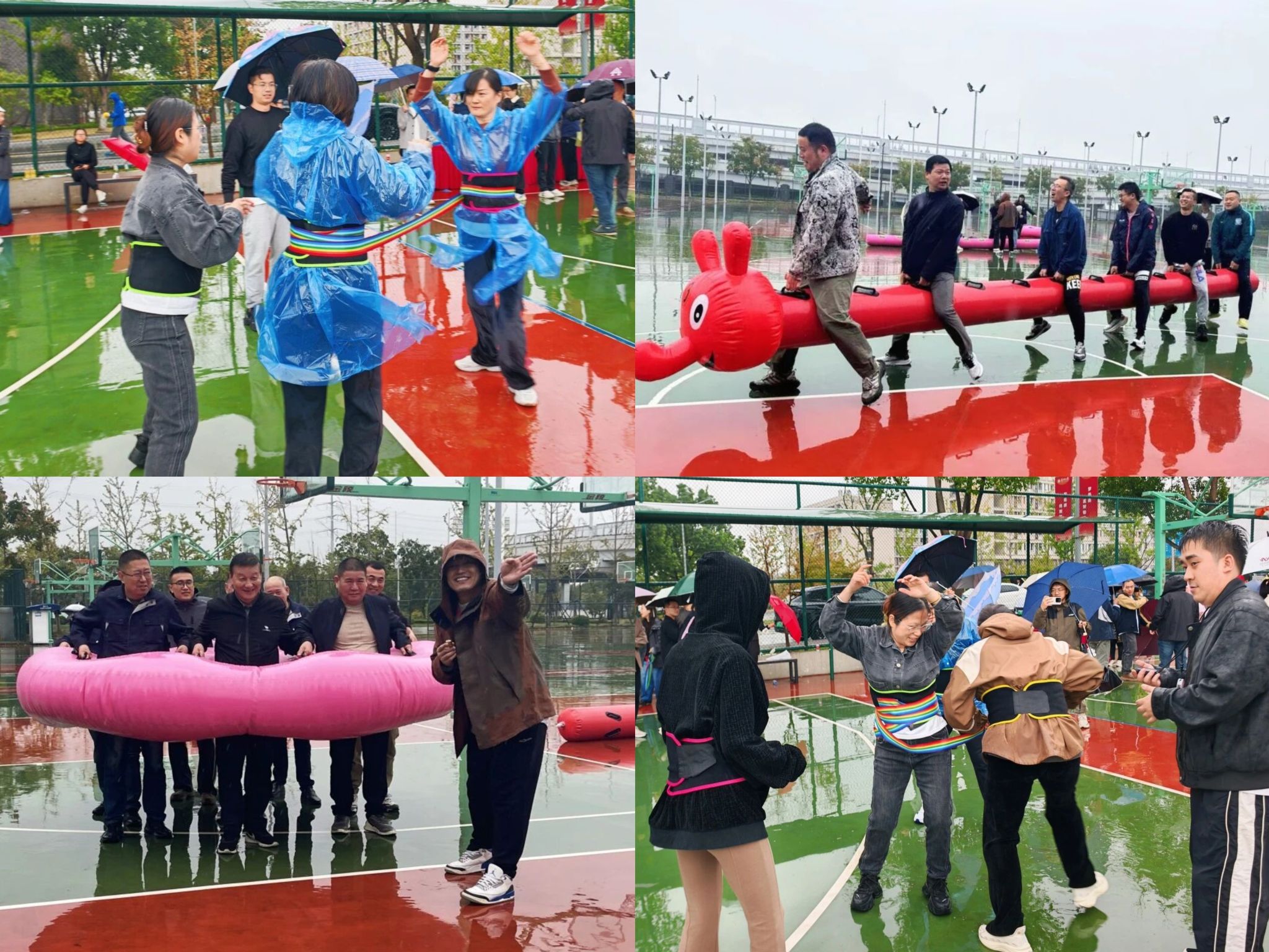 秋雨淅沥,凉意渐浓。雨水打湿了运动员的衣衫,却浇不灭他们心中的激情。赛场上,他们齐心协力、步伐一致,每一次奋勇向前,都凝聚着团队的力量;每一次交接棒的瞬间,都传递着坚定信任和责任。“巨人脚步”项目中,队员们绑脚化身为默契的“巨人”,从训练时步履蹒跚到比赛时健步如飞,离不开大家的相互理解、支持与鼓励。“八仙过海”项目充满创意挑战,选手各显神通,或凭灵活身手,或靠团队协作完成任务,展现出后勤人的活跃思维与创新意识;“爱的魔力转圈圈”中,选手们配合默契、灵活转动,这种团结友爱、互帮互助的精神在后勤团队中处处体现;最激动人心的“8×60米迎面接力”,选手如离弦之箭冲出起跑线,在赛道上奋力奔跑,准确传递接力棒,每一次交接都扣人心弦,每一次冲刺都让人热血沸腾,他们用速度和激情诠释拼搏意义,为团队荣誉全力以赴。