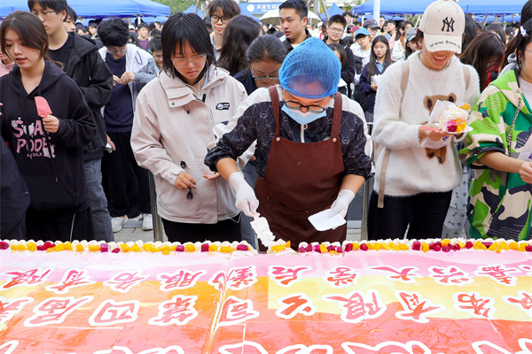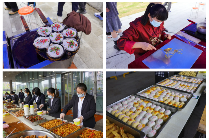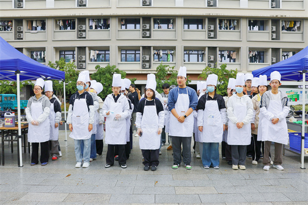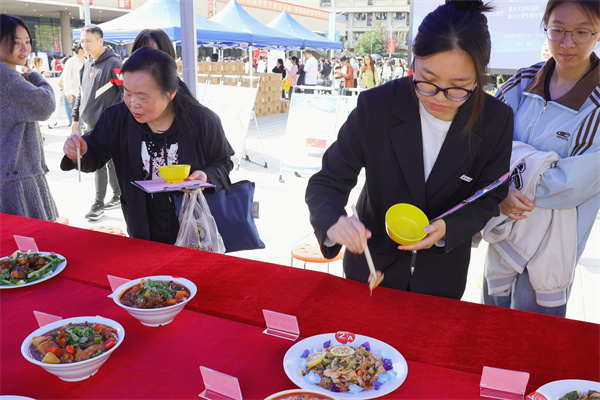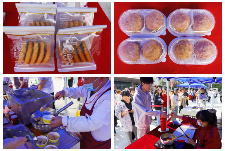 美食盛宴现场人声鼎沸、热闹非凡,在熙熙攘攘的人群里,处处弥漫着欢乐的氛围。师生们热情高涨,自觉有序地排起长队,目光热切地投向琳琅满目的美食。厨师们纷纷大展身手,围绕多个别出心裁的主题,凭借精湛的厨艺和灵巧的创意,精心烹制出多种鲜香扑鼻、口感绝伦的精美菜品。现场各式佳肴云集,热菜蒸腾着袅袅香气,点心蕴藏着精致小巧,炸串色泽金黄,令人垂涎欲滴。每一道美食都仿佛有着独特的魅力,让师生们满心欢喜、赞不绝口。