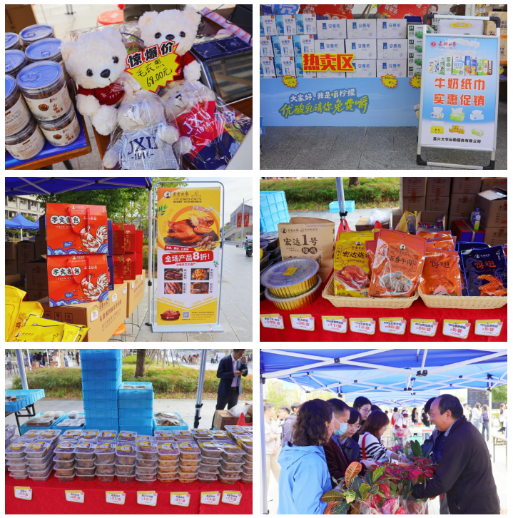 互动活动区亦是热闹非凡、人流如织。后勤服务有限公司紧密结合服务职能,精心策划并推出了一系列公益知识科普与有奖问答宣传活动,内容涵盖垃圾分类、反诈宣传、防灾减灾、公寓防火、节约粮食、节能降碳等多个方面。此外,后勤服务咨询、义务维修服务、消费帮扶产品促销、花卉绿植及奶制品、纸制品平价销售等活动,也吸引了众多师生踊跃参与。本届活动在总结前七届宝贵经验的基础上,继续深入践行“三全育人”和“五育并举”理念,着重突出校园民生服务、消费帮扶、校园文化等核心主题,精准聚焦师生实际需求。
