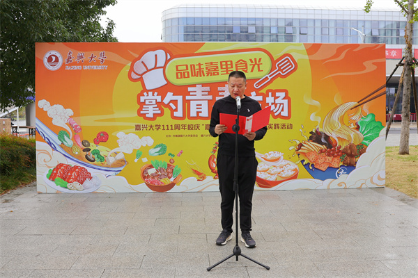 秋光潋滟,共赴美食雅韵之约;佳期良辰,同启文化华彩新章。为提升后勤服务品质,丰富校园文化生态,10月31日中午,由嘉兴大学后勤服务有限公司主办、龙庄润集团有限公司协办的“百十一载校庆续新篇,后勤文化建设提质效——第四届校园美食文化节暨第八届后勤文化建设月现场活动”在桂园餐厅北面广场举行。校党委委员、副校长王立玮出席活动,致开幕词并宣布活动开幕。