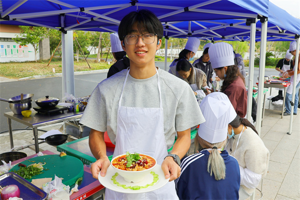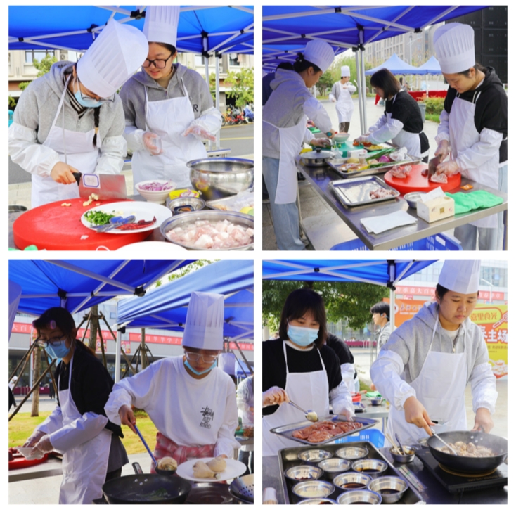 与此同时,“嘉里学子厨艺秀”现场烹饪大赛正如火如荼地进行着。参赛学生们各显神通、相互协作,在菜品的色泽、香气、味道和造型上精雕细琢,力求以精湛的厨艺征服评委与观众。这场大赛不仅充分展示了学校劳动育人的成效,更彰显了嘉大学子积极向上、朝气蓬勃的精神风貌。