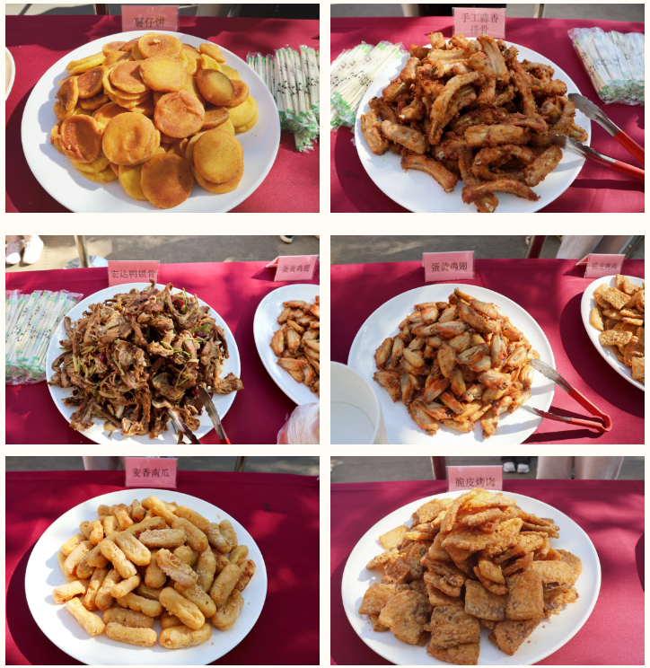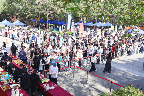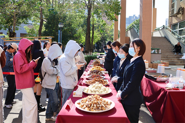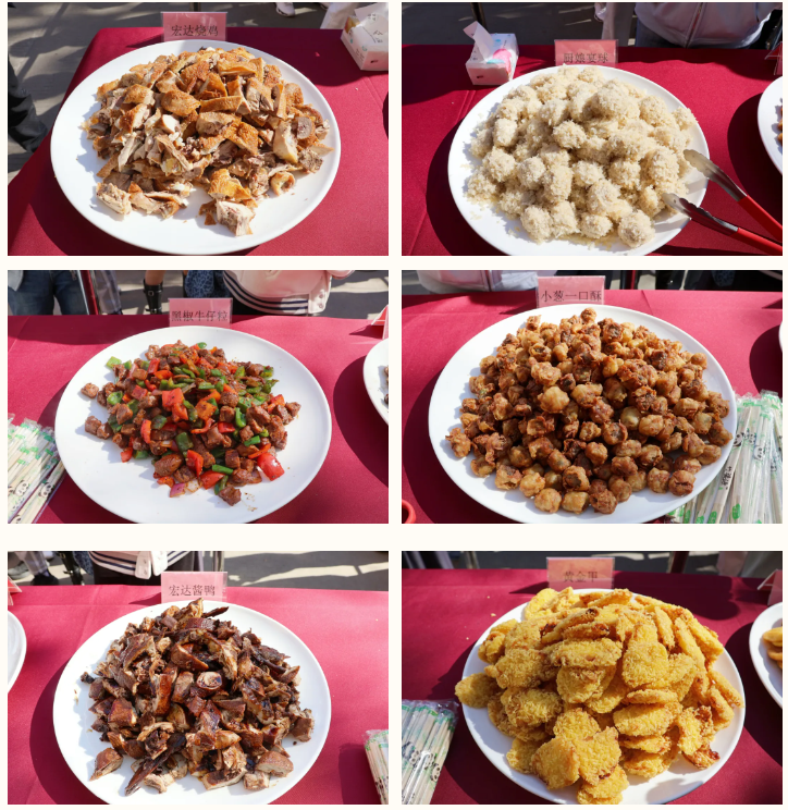 美食盛宴区,到处弥漫着欢乐的氛围。师生们热情高涨,自觉排起长队,目光聚焦于琳琅满目的美食。厨师们大显身手,以精湛厨艺和灵巧创意,烹制出鲜香扑鼻、口感绝佳的菜品。热菜氤氲着浓郁香气,点心精致小巧藏巧思,炸串色泽金黄诱人,令人垂涎欲滴。每一道菜品都凭借其出色的品质和独特的风味,赢得了师生们的一致称赞。