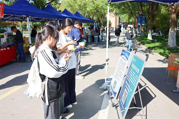互动活动区同样人流如织。后勤服务有限公司精心策划了公益知识科普和有奖问答活动,内容涵盖垃圾分类、反诈宣传、防灾减灾等多个方面。此外,后勤服务咨询、消费帮扶产品促销、嘉大文创销售等活动也吸引了众多师生踊跃参与。