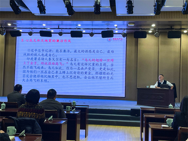 在专题培训环节,浙江生态文明干部学院办公室主任、省社会主义学院特约评论员、省社院统一战线智库专家、湖州市数字化改革专家组成员卢晨昊副教授以清廉理论分析和感人家书宣讲的形式作专题讲座。