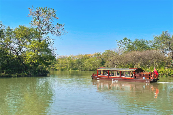 清晨的阳光驱散凉意,职工们怀着期待的心情集结出发,一路欢声笑语、暖意融融。首站抵达塘栖古镇,这座沉淀着千年历史的江南古镇,青石板路蜿蜒曲折,白墙黛瓦错落有致,大运河穿镇而过。职工们三五成群漫步老街,脚下的石板路被岁月磨得温润光滑,两侧的老字号商铺飘出阵阵美食香气,手工糕点、蜜饯肉脯等特色小吃引得大家驻足品尝。大家时而欣赏古朴的廊桥和斑驳的马头墙,在运河畔驻足远眺,感受古镇的静谧与厚重;时而交流生活趣事、畅谈工作心得,欢声笑语在古巷中回荡,团队的亲切感愈发浓厚。午后,队伍辗转前往西溪湿地。作为“城市之肾”的西溪,芦苇随风摇曳,泛起层层白浪;湖水清澈见底,倒映着蓝天、白云与岸边的红枫、银杏,构成一幅色彩斑斓的天然油画。职工们乘坐观光游轮穿梭于湿地水道,清风拂面、花香萦绕,沿途的秋景如流动的电影画面徐徐展开,让人目不暇接。大家纷纷拿出手机记录美景,尽情享受大自然的馈赠。在西溪湿地演艺中心,全体人员共同观看了经典舞台剧《今夕何夕》,在艺术熏陶中收获了心灵的治愈与升华。