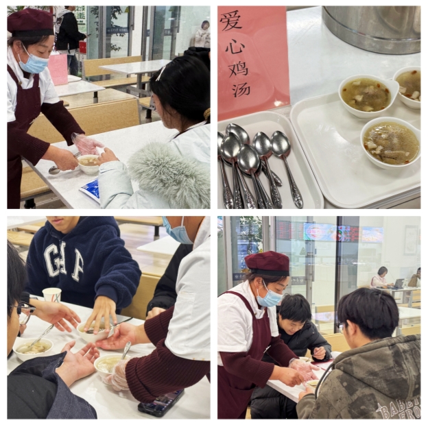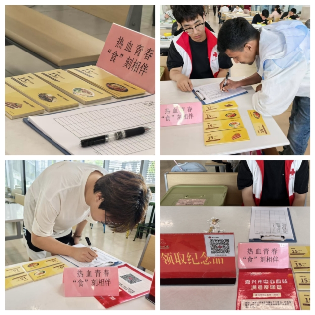 在无偿献血活动筹备阶段,我校后勤展现出了高度的责任感与行动力,主动对接血站需求,依据献血活动的具体流程与人员分布等实际情况,积极做好各项准备工作。活动现场,嘉大后勤延续“公益+服务”的暖心模式,将细致入微的关怀落实到每一个环节,通过充分考虑献血师生的实际需求,精心准备了品类丰富、使用贴心的爱心物资。其中为献血师生发放餐券近1200张;联合荷园餐厅、梅园餐厅、桂园餐厅的多家档口推出“爱心餐券多选一”专属活动,让师生在奉献爱心的同时,也能感受到来自学校后勤的贴心关怀。现场的一碗碗特别熬制的爱心鸡汤热气腾腾、香气四溢,散发着家的温暖,轻轻抚慰着献血后略显疲惫的师生,为他们及时补充满满的能量;那一张张贴心发放的免费餐券,如同温暖的小使者,让师生们在献血后能迅速前往食堂,第一时间享用上热乎可口的饭菜。这些饱含真情的暖心举措,为献血师生和医护人员营造了一个舒适、便捷且温馨的环境,让大家在献血活动中感受到了家一般的温暖。此外,后勤党员主动亮身份、作表率,充分发挥先锋模范作用,积极参与献血活动,以实际行动践行初心使命,为公益献血活动注入红色力量。