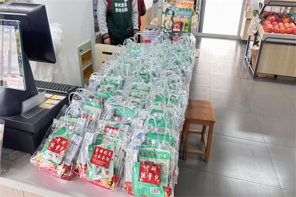商贸服务部推出的“考研能量包”成为学子们的“应援佳品”。能量包内精心搭配了巧克力、坚果、牛奶等实用好物,为考生快速补充能量。考前,工作人员在和兴生活超市设立发放点,将一份份承载着祝福的能量包送到考生手中,同时送上“金榜题名,一举夺魁”的美好祝愿。