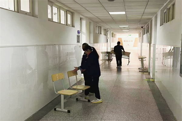 物业服务部与修缮服务部强强联动,全方位筑牢服务保障防线,为考试顺利进行保驾护航。工作人员提前完成考场标准化布置,保洁团队对考场周边公共区域展开全面清扫,确保环境整洁卫生;同时,维修师傅对考场内的照明、空调、桌椅等设施进行逐一检修,全力营造安心、舒适的考试环境。
