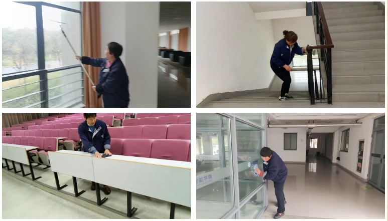 为了给广大学子营造一个安全舒适、整洁温馨的生活环境,公寓服务部全体工作人员提前到岗,以饱满的热情投入到新学期的开学准备工作中,力求在每个细节上做到精益求精,让学生返校如归家。保洁人员对公寓楼开展全方位、无死角的深度清洁,从大厅玻璃到走廊地面,从楼梯扶手到卫生间瓷砖,每一处都经过反复擦拭。在日常管理上,公寓服务部已完成新学期各类工作记录本的更新与发放。新的值班日志、维修登记表、晚归记录本等已整齐摆放在各楼栋值班室,提醒宿管人员从开学第一天起就坚持规范记录,确保每一项工作都有迹可循、有据可查,为精细化公寓管理打下坚实基础。