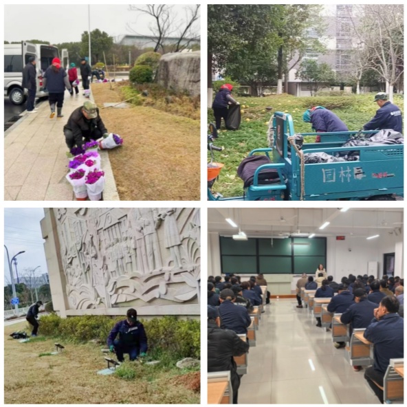 为全面做好新学期校园物业服务工作安排部署,进一步统一思想、明确目标、压实责任,切实筑牢校园服务保障防线,2月26日上午,物业服务部召开新学期工作会议。会后,部门迅速行动、狠抓落实,聚焦校园环境整治提升,扎实开展校园环境大清扫、教学楼大厅玻璃清洁、图书馆装修后卫生清理、校园路面地砖除草、路面清淤及下水管道疏通等工作,全力为师生返校后正常的教育教学与生活秩序提供坚实保障。