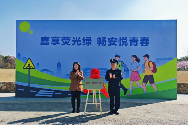 在现场嘉宾的共同见证下,陈立力与阮建松共同为“畅安・同悦”工作室揭牌,标志着校警携手共建校园交通安全工作迈入新阶段。揭牌仪式后,陈立力与阮建松为首批“畅安・绿马甲”学生志愿者代表授马甲,一抹抹鲜亮的绿色成为现场一道动人的风景线。志愿者代表上台表态发言,表达了将践行志愿精神、守护校园交通安全、积极参与校警合作活动的坚定决心。