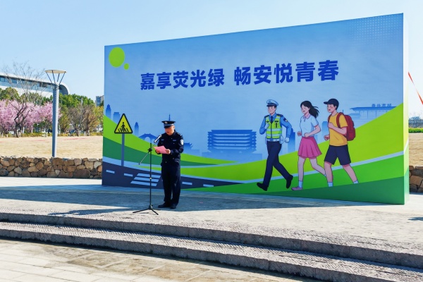 陈立力在致辞中表示,此次“畅安·同悦”工作室的成立是深化校警合作的重要举措,既是校园交通安全建设的新探索,也是践行立德树人、培育学生社会责任感的新途径。她希望以工作室为载体,让“荧光绿”与“绿马甲”相映生辉,为校园交通安全保驾护航。阮建松在致辞中肯定了校警合作、守护校园交通安全的重要意义,期待以工作室为桥梁,将专业的交通管理知识与校园实践相结合,培养学生的交通安全意识,共同打造平安、畅通、和谐的校园交通环境,让青春在守护安全中绽放光彩。