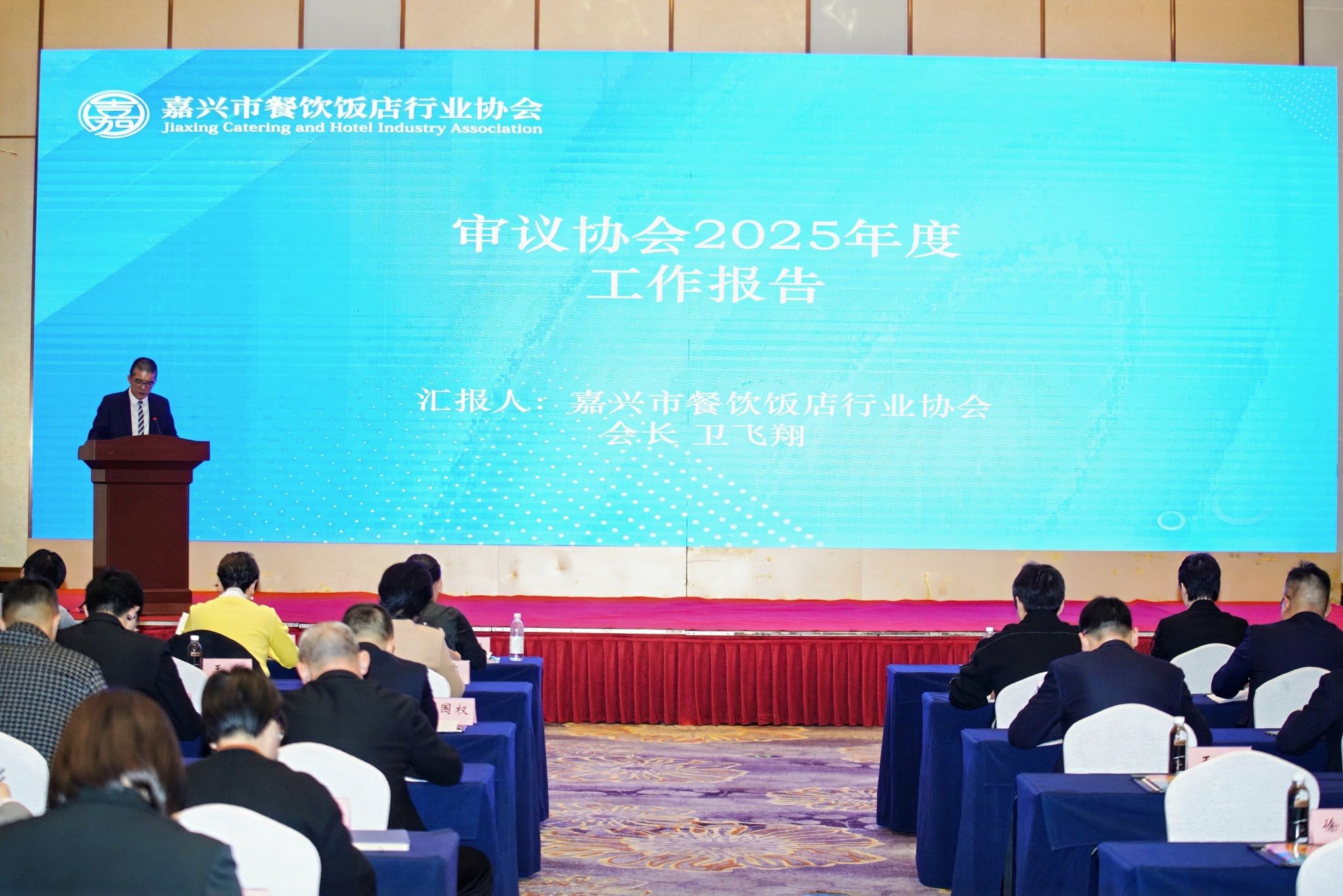 会议还对2025年度行业先进予以表彰。我校后勤服务有限公司深耕高校餐饮服务领域,始终将食品安全与服务品质摆在首位,切实保障师生饮食需求,积极履行企业社会责任,荣获“2025年度最具责任感企业”;桂园教工餐厅总厨毛日辉深耕烹饪领域多年,凭借精湛的烹饪技艺、对菜品品质的极致追求与持续的研发创新能力,荣获“嘉兴市餐饮饭店行业金牌厨师长称号”。