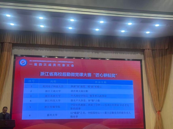 大会还公布了浙江省高校后勤微党课大赛评审结果,我校后勤服务有限公司报送的作品《以“暖嘉”之名,守校园初心——嘉大后勤党员的服务育人微故事》凭借主题鲜明、叙事生动、内涵深刻等特点,经大赛组委会严格评审,荣获“匠心耕耘奖”,充分彰显了我校后勤党建工作与服务育人实践的扎实成效。