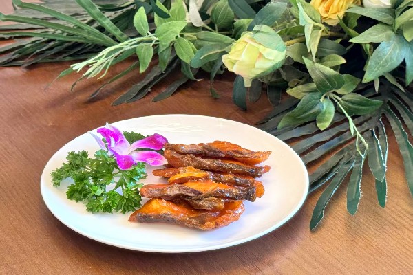 在众多佳肴中,造型与口味俱佳的“茄汁葡萄鱼”成为当之无愧的“人气王”,备受师生青睐。厨师选用鲜活草鱼,经精细改刀后入锅炸至金黄酥脆,捞出后均匀淋上秘制茄汁,成品宛如一串串饱满莹润的葡萄,外酥里嫩的口感搭配酸甜适中的味道,既满足味蕾享受,更带来视觉盛宴。另一道“苏式爆鱼”则极具江南特色,鲜鱼经秘制酱料腌制后炸至外皮紧实,再浸入酱油、冰糖、香料熬制的卤汁中充分入味,肉质紧实有嚼劲,咸甜交织的卤香在口中层层绽放,让不少校友吃出了“家乡的味道”。餐台旁,师生校友有序排队领取菜品,餐盘里的佳肴与脸上的笑容相映成趣,成为校庆期间动人的风景。“鱼宴太惊喜了!干烧鱼段的鲜香、酸菜鱼片的爽脆都超对胃口,深深感受到后勤的用心与诚意。”一位手持餐盘的同学难掩喜悦之情。