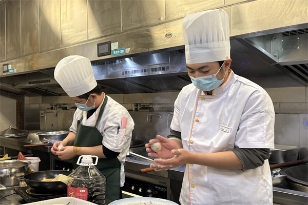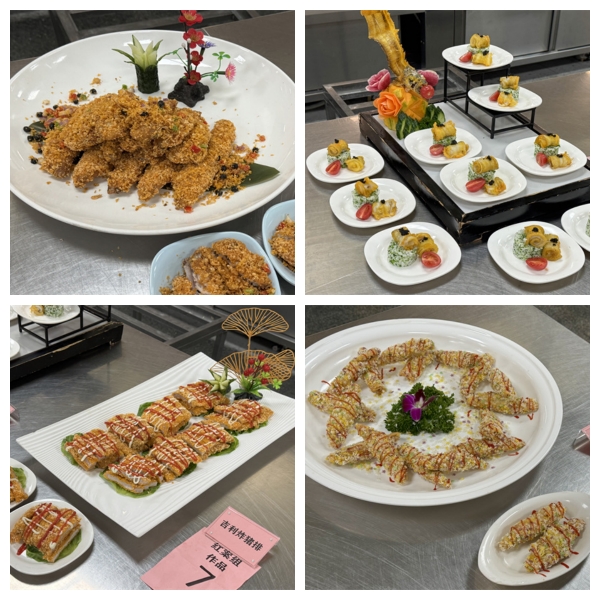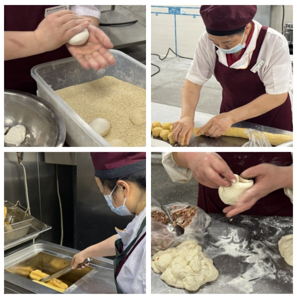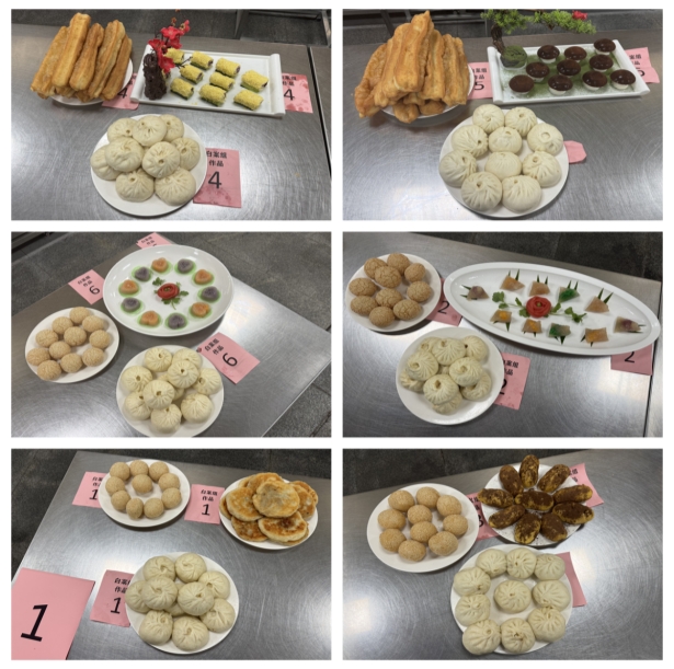 为积极备战浙江省高校后勤第九届餐饮技能比武大赛(白案),白案组严格对标省赛标准推进筹备工作。比赛现场,选手们依次投入三大环节比拼。制作鲜肉大包时,他们精准控制面粉与水分比例,揉制出光滑面团,随后擀皮、包馅、捏褶一气呵成,最终呈现的包子外观饱满、褶花规整。在麻球/油条自选环节,选择麻球项目的选手在面团上均匀裹满芝麻,入油锅翻炸至金黄酥脆;选择油条项目的选手将面段叠压塑形后下锅,炸制出蓬松香脆的油条。在面点创作环节,选手们巧思迸发,将传统技法与现代创意相融合,呈现出造型独特、色彩缤纷的作品。此次比拼既是技艺切磋的舞台,也是省赛人才选拔的重要通道,为校园面点技艺传承与提升储备了骨干力量。