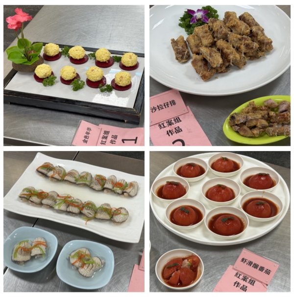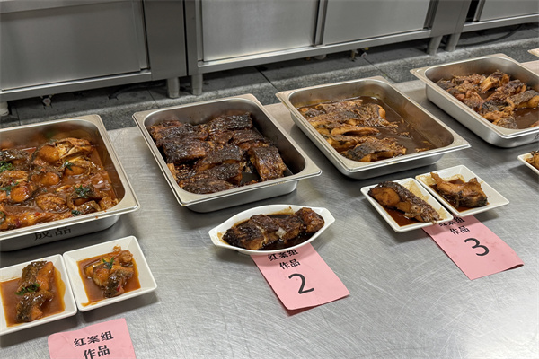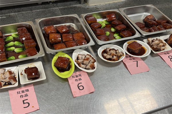 红案组的比拼可谓是一场味觉的饕餮盛宴。比赛中,选手们不仅要精心烹饪“嘉里大肉”“干烧鱼段”两道固定特色菜品,而且要充分释放创意,用心打造自选菜品,将营养搭配、口味创新与地域饮食特色巧妙融合。经过一番激烈的角逐,一道道色香味俱全的菜品惊艳亮相,充分展现了选手们精湛绝伦的厨艺和丰富多元的创新思维。