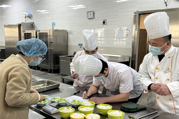 服务组的比武别出心裁,创新性地将日常工作场景搬进赛场。考核以打饭打菜时重量的精准度以及所用时间为关键指标。赛场上,选手们动作娴熟、操作规范,对每一份菜品的分量都把控得恰到好处,充分展现出长期扎根岗位练就的扎实基本功,也生动彰显了“用心服务、精益求精”的服务理念。