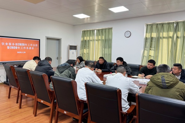 为全面复盘2025年部门工作成效,精准谋划2026年发展蓝图,切实提升后勤饮食服务保障水平,1月24日上午,饮食服务部召开2025年工作分析会暨2026年工作务虚会。公司总经理吴国祥、副总经理周华丽、饮食服务部副主任吕亚伟、部门办公室成员、各餐厅(含租赁单位及合作档口)负责人等参加会议,会议由饮食服务部主任马运金主持。